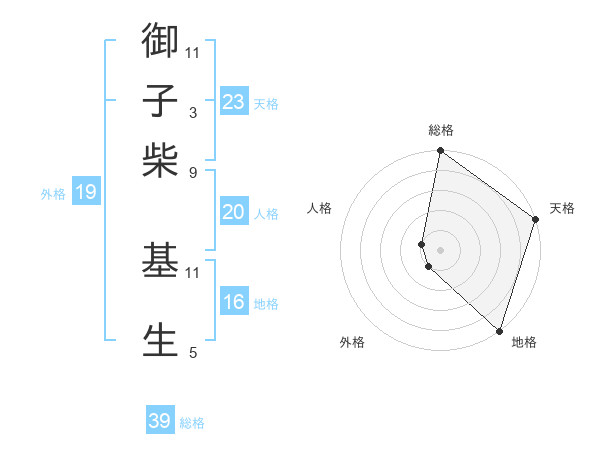 御子柴 基生さんを姓名の画数から五運を鑑定