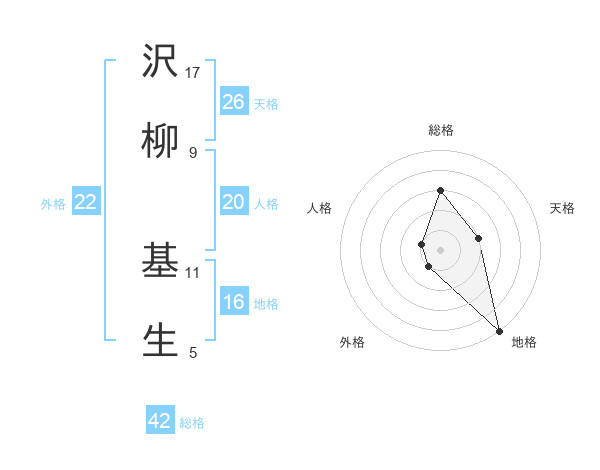 沢柳 基生さんの総格は42画の3点!