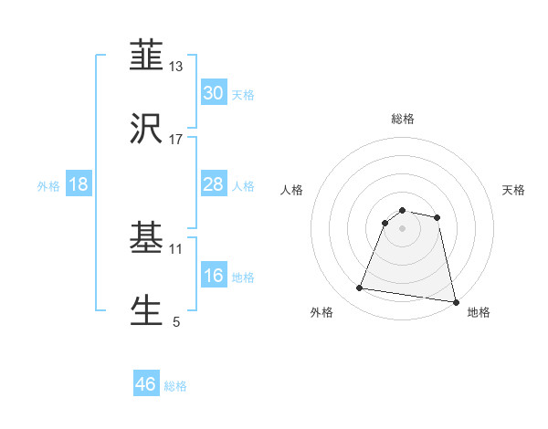 韮沢 基生さんの総格は46画の1点!