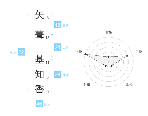 矢葺 基知香さんを姓名の画数から五運を鑑定