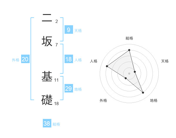 二坂 基礎さんの総格は38画の4点!