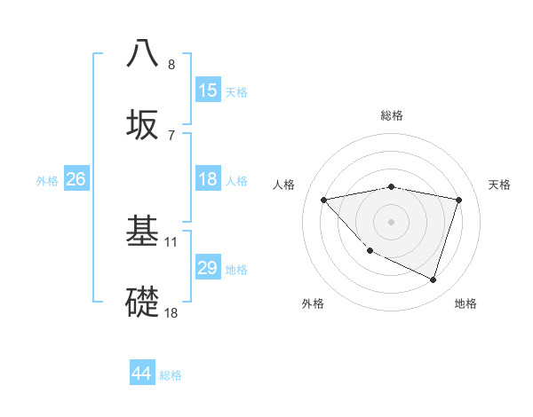 八坂 基礎さんの総格は44画の2点!