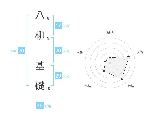 八柳 基礎さんの外格は26画の2点!