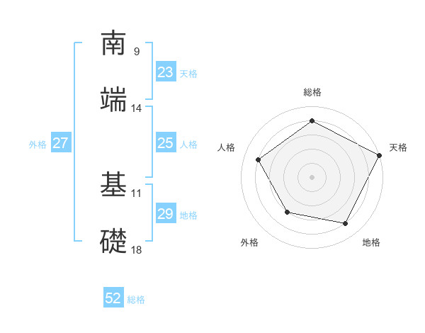 南端 基礎さんの総格は52画の4点!