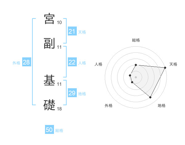 宮副 基礎さんの天格は21画の5点!