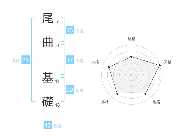 尾曲 基礎さんを姓名の画数から五運を鑑定