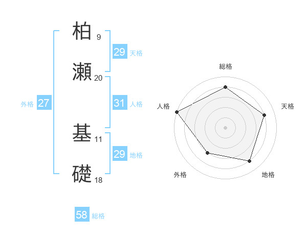 柏瀬 基礎さんの天格は29画の4点!