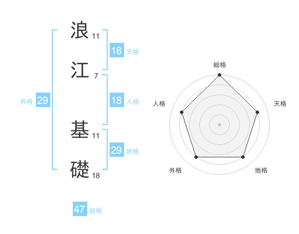 浪江 基礎さんを姓名の画数から五運を鑑定