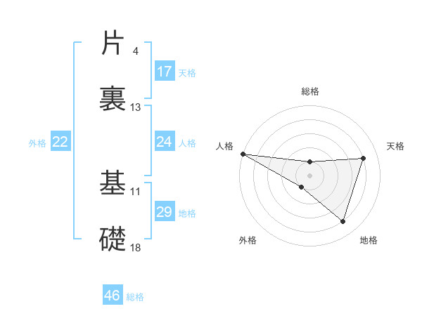 片裏 基礎さんの天格は17画の4点!