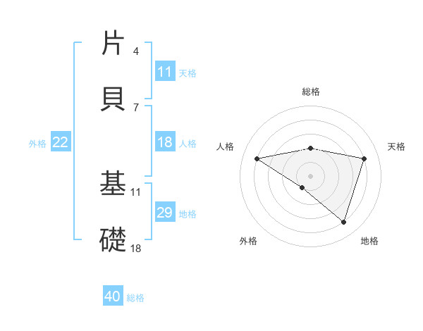 片貝 基礎さんの外格は22画の1点!
