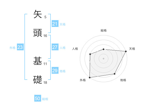 矢頭 基礎さんの総格は50画の2点!