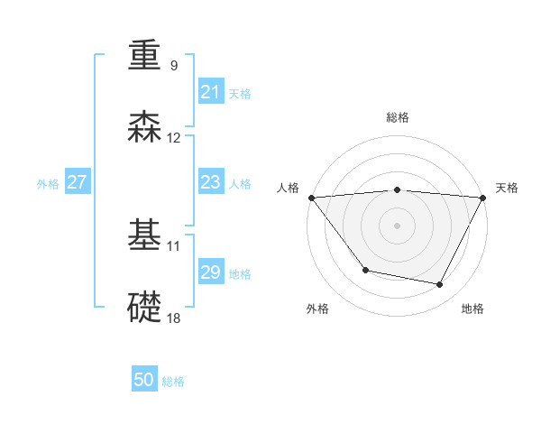 重森 基礎さんの総格は50画の2点!