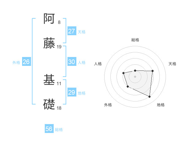 阿藤 基礎さんの外格は26画の2点!