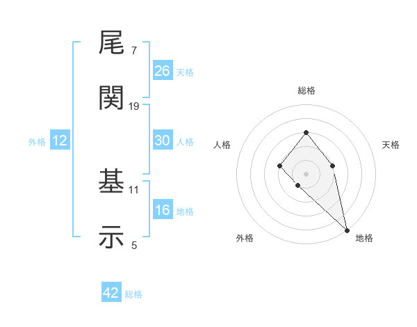 尾関 基示さんの地格は16画の5点!