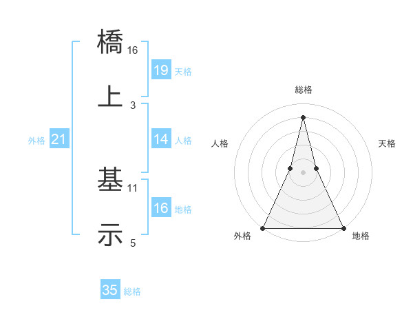 橋上 基示さんの総格は35画の4点!