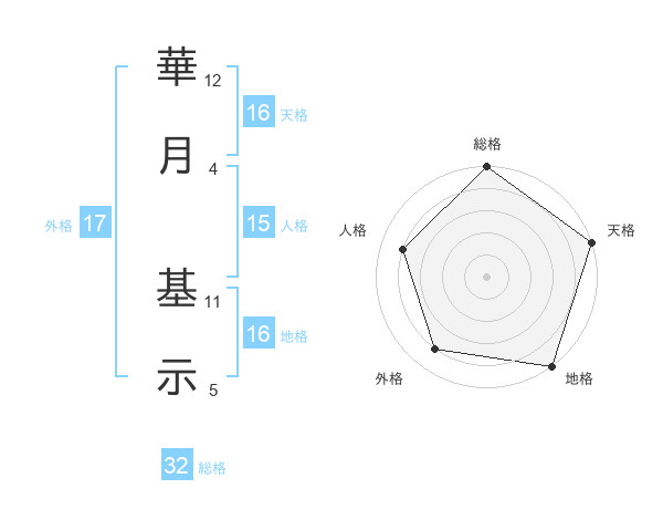 華月 基示さんの天格は16画の5点!