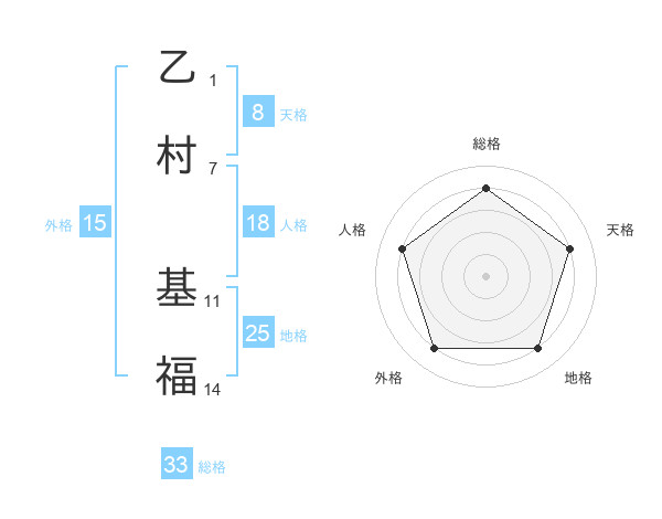 乙村 基福さんの総格は33画の4点!
