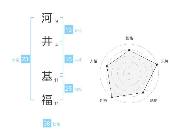 河井 基福さんの総格は38画の4点!
