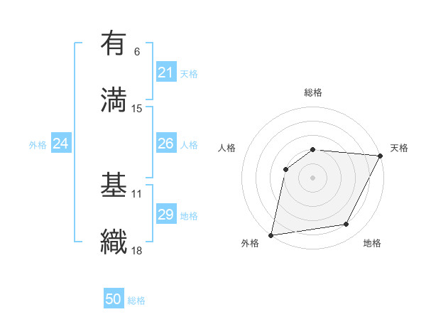 家系が持つ宿命的な運勢を表します。祖先から受け継いだ苗字ですので自分の力が及びません。家柄を象徴します。