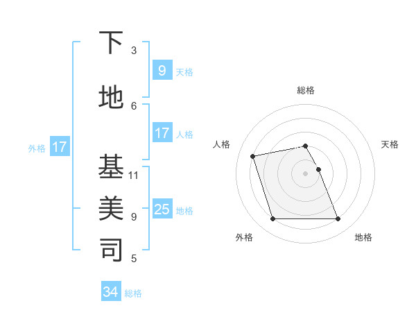 下地 基美司さんの総格は34画の2点!