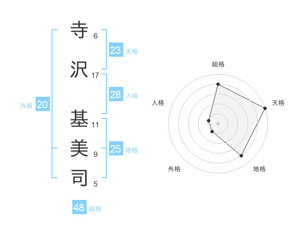 寺沢 基美司さんの天格は23画の5点!