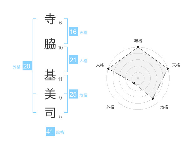 寺脇 基美司さんの総格は41画の5点!