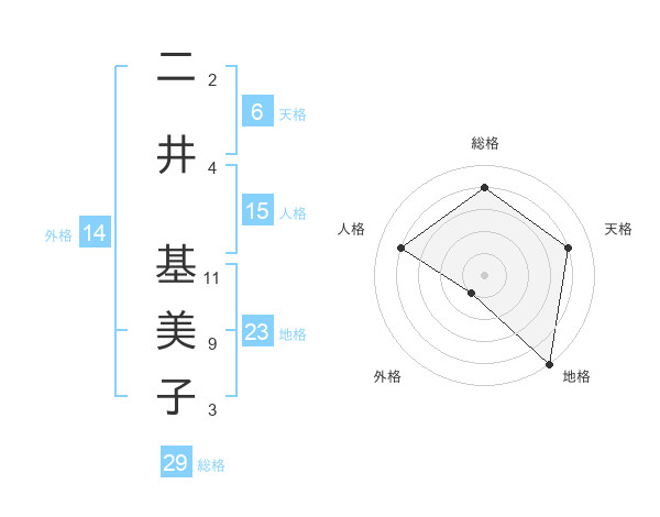 二井 基美子さんの総格は29画の4点!