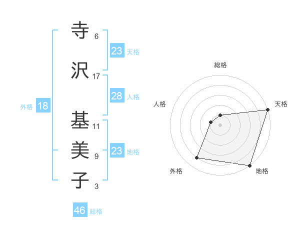 寺沢 基美子さんの天格は23画の5点!