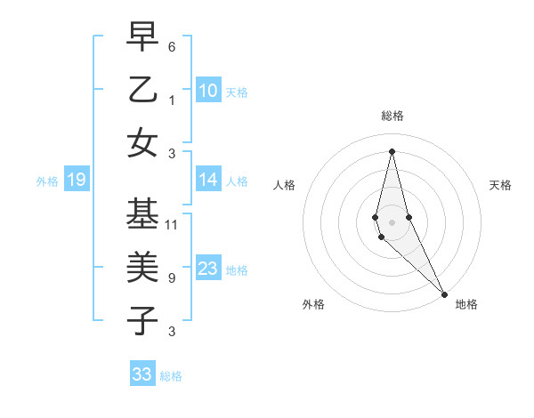 早乙女 基美子さんの総格は33画の4点!
