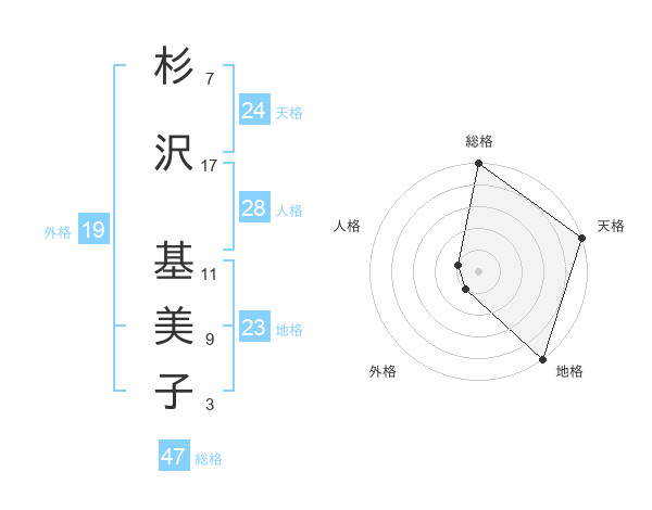 杉沢 基美子さんの総格は47画の5点!