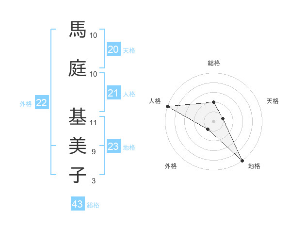 馬庭 基美子さんを姓名の画数から五運を鑑定