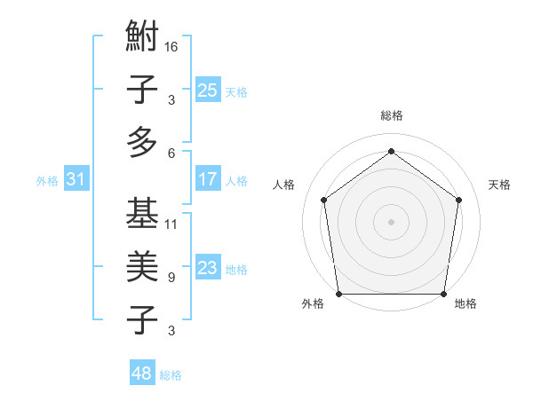 鮒子多 基美子さんを姓名の画数から五運を鑑定