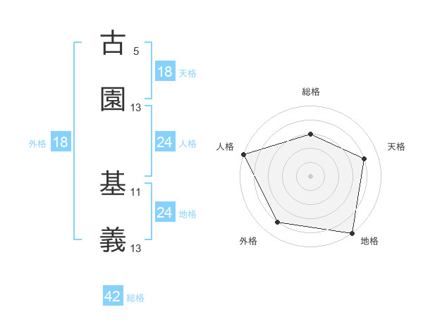 古園 基義さんの地格は24画の5点!