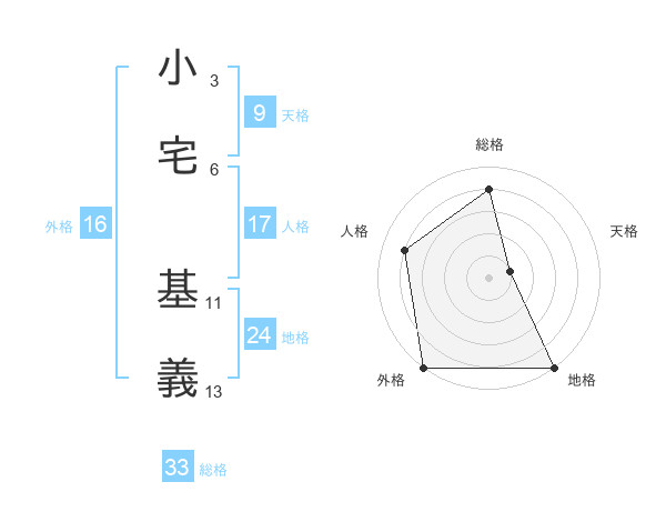 小宅 基義さんの総格は33画の4点!