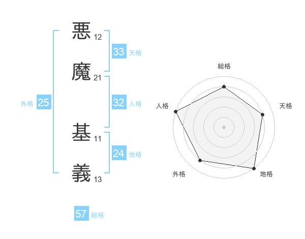 悪魔 基義さんの総格は57画の4点!