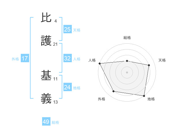 比護 基義さんの天格は25画の4点!