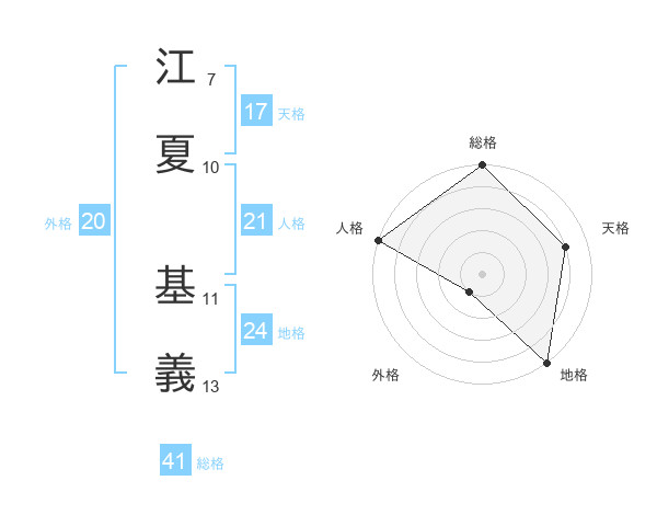 江夏 基義さんの天格は17画の4点!