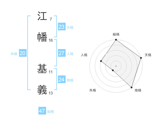 江幡 基義さんの天格は23画の5点!
