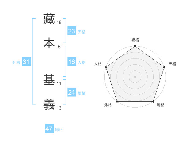 藏本 基義さんの総格は47画の5点!