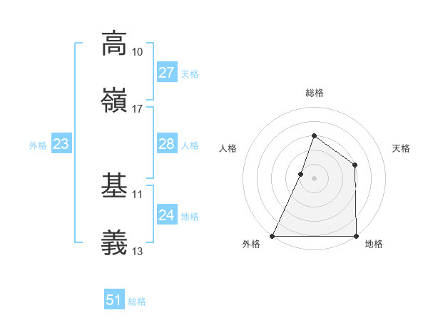 高嶺 基義さんを姓名の画数から五運を鑑定