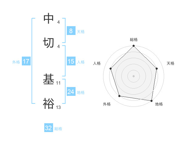 中切 基裕さんの外格は17画の4点!