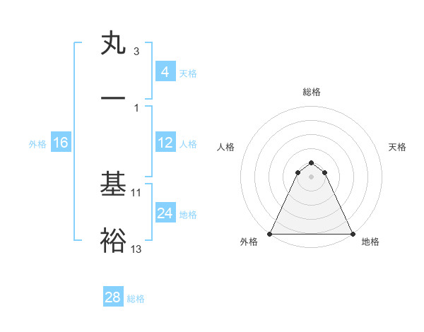 丸一 基裕さんを姓名の画数から五運を鑑定