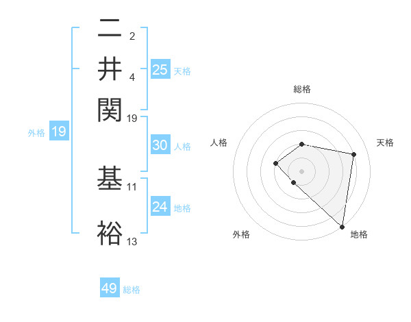 二井関 基裕さんの総格は49画の2点!