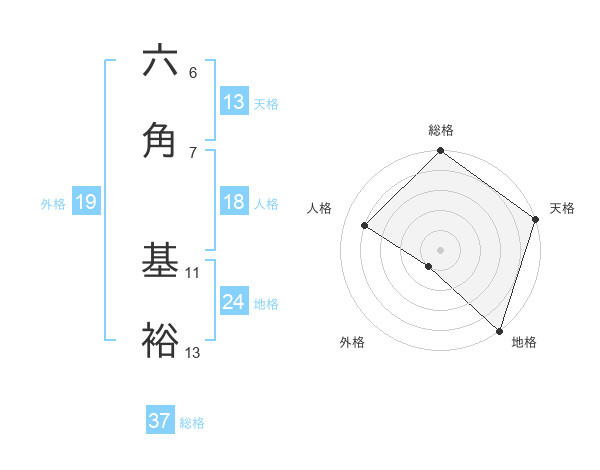 六角 基裕さんの総格は37画の5点!