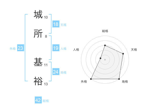城所 基裕さんの外格は23画の5点!