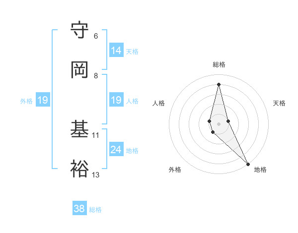 守岡 基裕さんの総格は38画の4点!