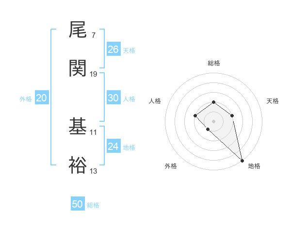 尾関 基裕さんの総格は50画の2点!