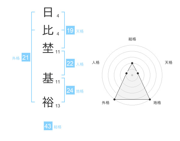 日比埜 基裕さんの外格は21画の5点!