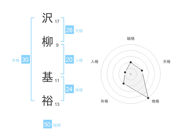 沢柳 基裕さんの総格は50画の2点!