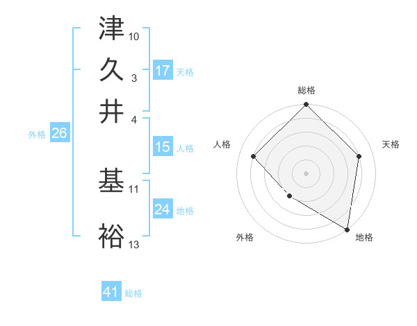 津久井 基裕さんの総格は41画の5点!